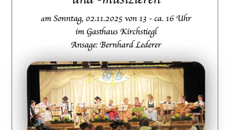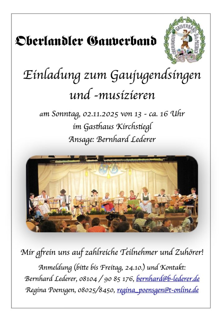 Am 2. November 2025 kommen junge Musikanten und Sänger zum traditionellem Jugendsingen und –musizieren des Oberlandler Gauverbandes in Kirchstiegl zusammen.