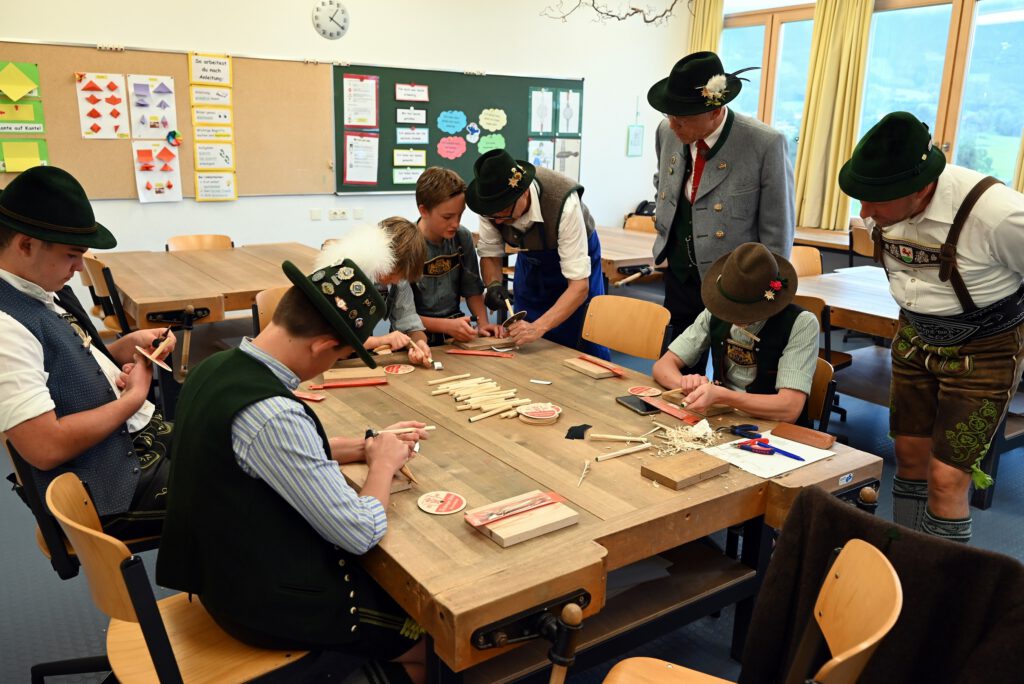 In den Räumen der Grundschule Samerberg durften sich die Jugendlichen für zwei aus acht verschiedenen Kursen anmelden. Im Angebot waren ein Kurs für Flechtfrisuren zum Dirndl, Halsketten basteln, ein Edelweiß-Schnitzkurs, Filz Handtaschen nähen, Goaßlschnalzen, ein Fotokurs, ein Cocktail Mix Kurs, sowie ein Kurs über Bayerische Geschichte. Magdalena Eder, stellvertretende Vorsitzende vom Verband der Trachtenjugend im Landkreis Rosenheim begrüßte die neugierigen Nachwuchs Trachtler. Sie bedankte sich beim Schirmherren und Landrat Otto Lederer, Hausherrn und erstem Bürgermeister der Gemeinde Samerberg Georg Huber, Gastgeber und erstem Vorsitzenden des GTEV Almenrausch Roßholzen Martin Schober und Landtagsabgeordneten Josef Lausch, der es sich nicht nehmen ließ, höchstpersönlich den Kurs über Bayerische Geschichte zu geben, nachdem der ursprünglich geplante Kunstschmiede Kurs leider abgesagt werden musste.